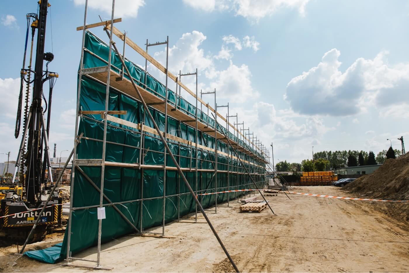• zbudowano tymczasowy ekran ziemny (z gruntu z wykopu) oraz dodatkowy tymczasowy ekran przenośny, których celem była eliminacja oddziaływania hałasu na użytkowników terenów znajdujących się w sąsiedztwie placu budowy – efektywność zabezpieczenia zweryfikowano wykonując pomiary poziomów hałasu;
